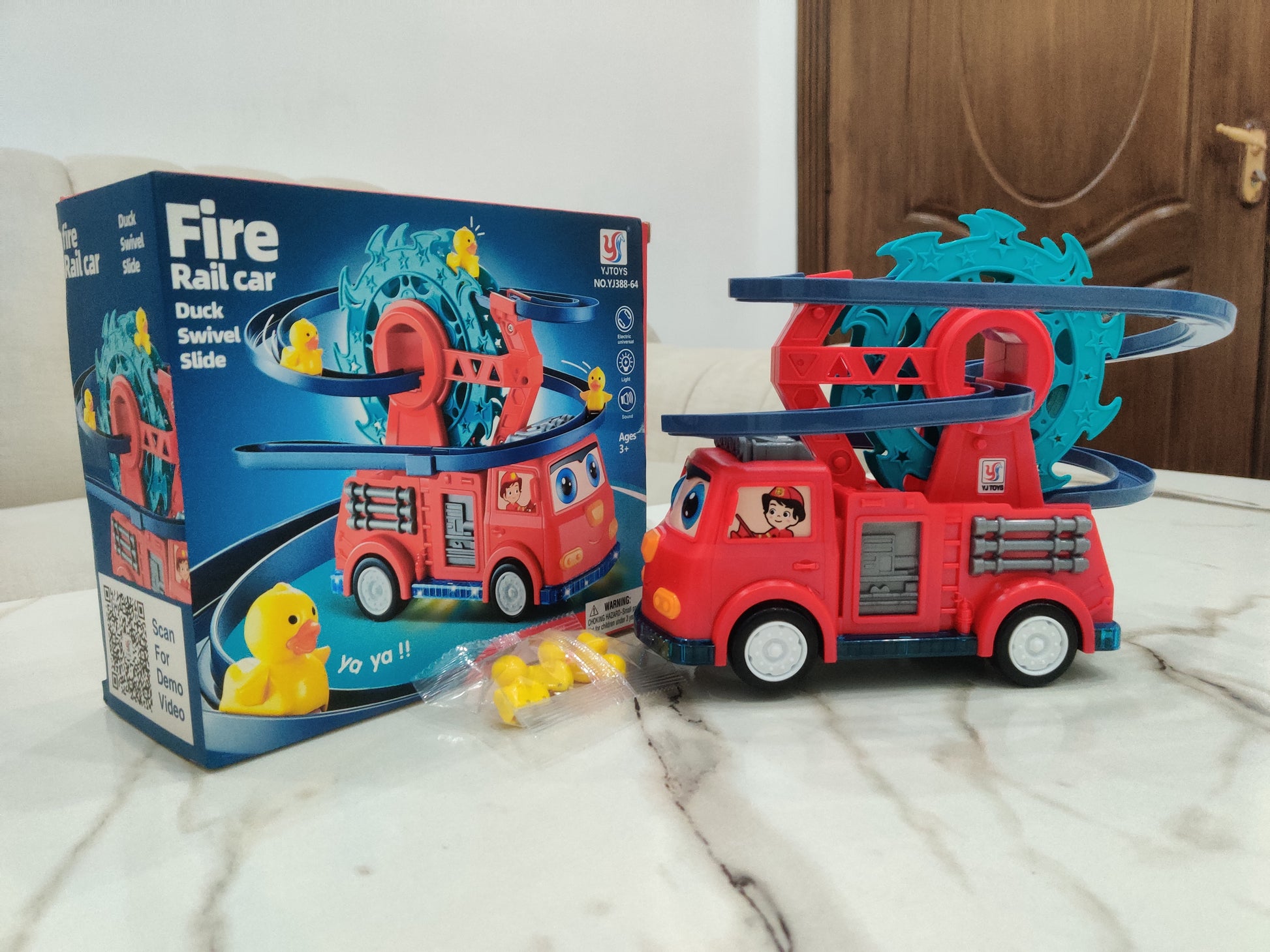 π Fire Rail Truck with Ducks β Musical Light-Up Toy Car with Track & Ducklings (3+ Years)