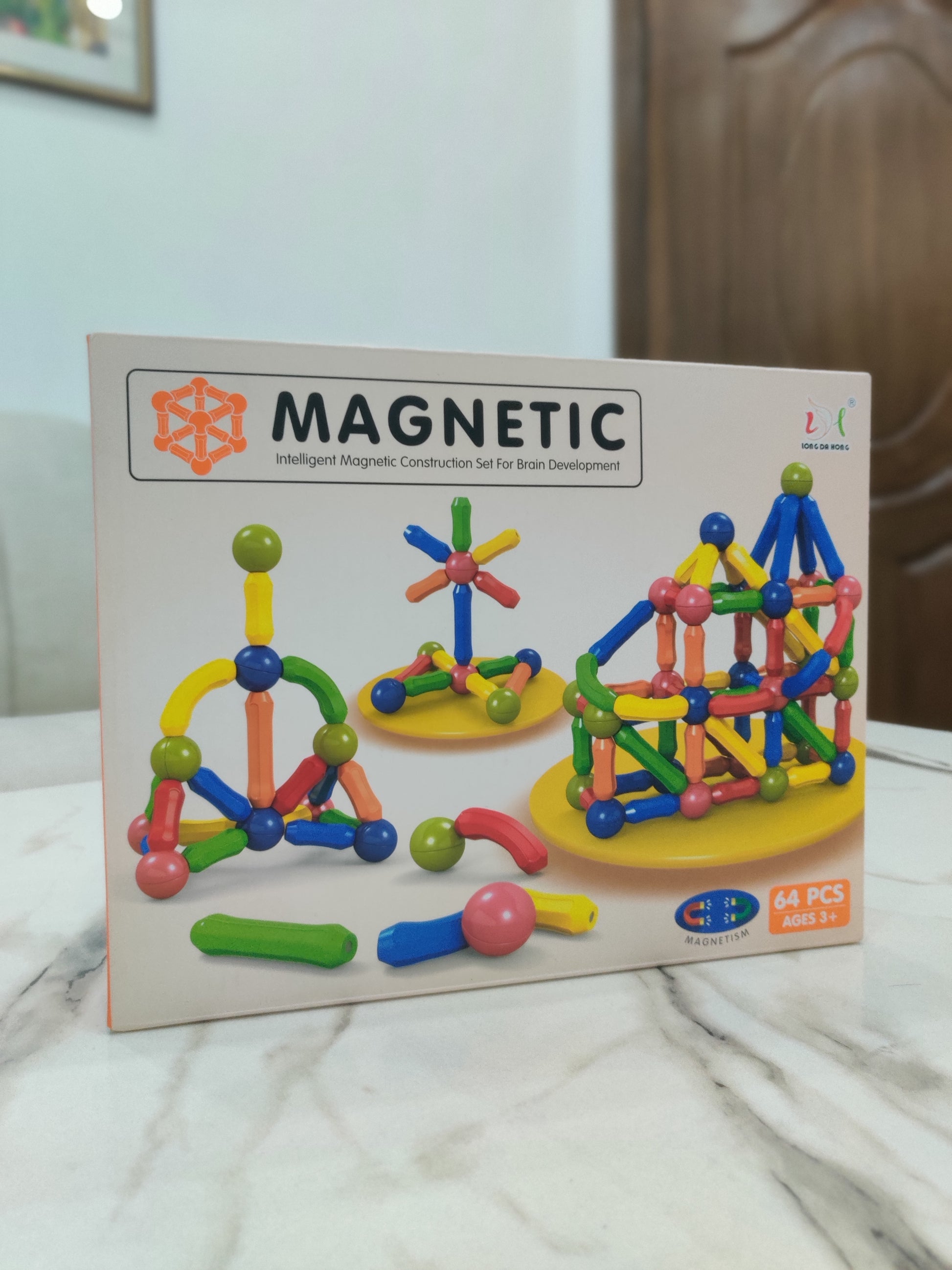 64 Pcs Magnetic Sticks & Balls Building Blocks – Creative STEM Toy for Kids